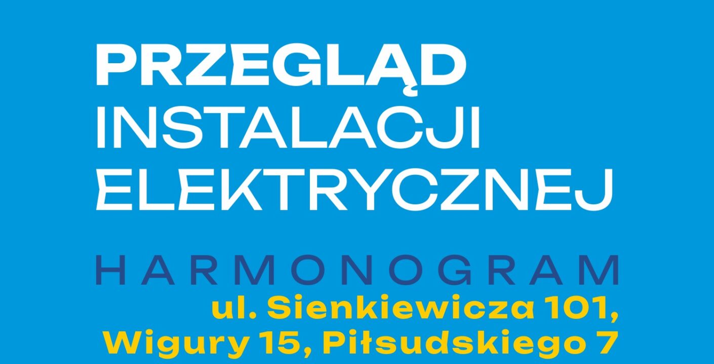 W nieruchomościach przy ul. Sienkiewicza 101/109, Wigury 15, al. Piłsudskiego 7 przeprowadzony będzie 5-cio letni przegląd techniczny instalacji elektrycznej oraz będą wykonane pomiary w lokalach mieszkalnych. Prace będą wykonywane przez pracowników firmy Voltea (kontakt z pracownikiem: 690-591-381 w godzinach 10:00- 14:00).